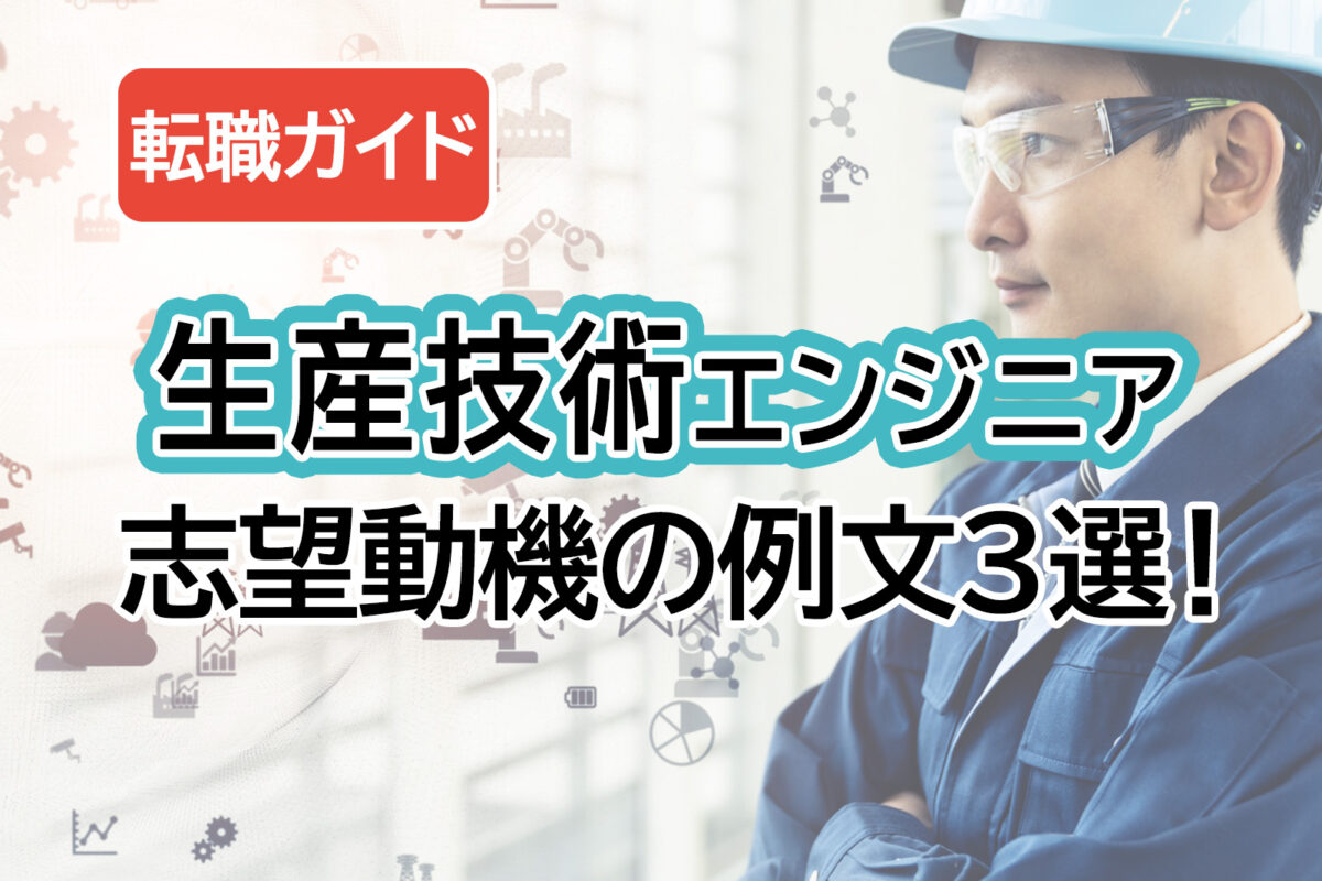 この記事では生産技術エンジニアの仕事内容や志望動機の例文などについて解説します。未経験から生産技術エンジニアへの転職を考えている人は、ぜひこの記事を参考にしてみてください。