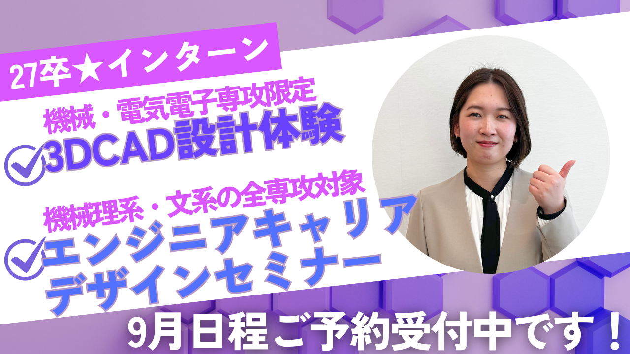 【27卒】人気の2つインターン★3DCAD設計体験&エンジニアキャリアデザインセミナー9月日程予約受付中!2025.08.20 -